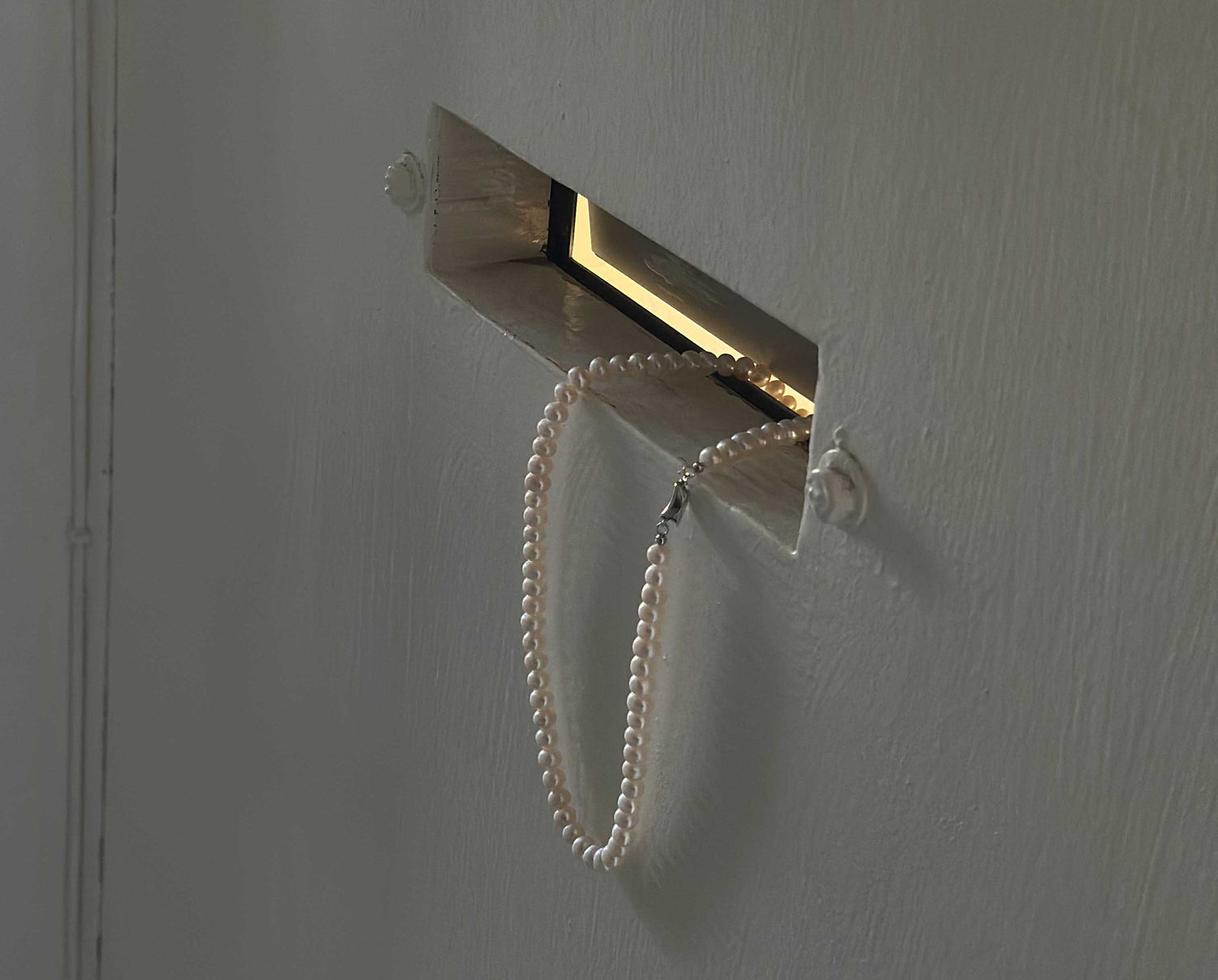Dark depths meet silver light, deep and multicolored pearls glow.