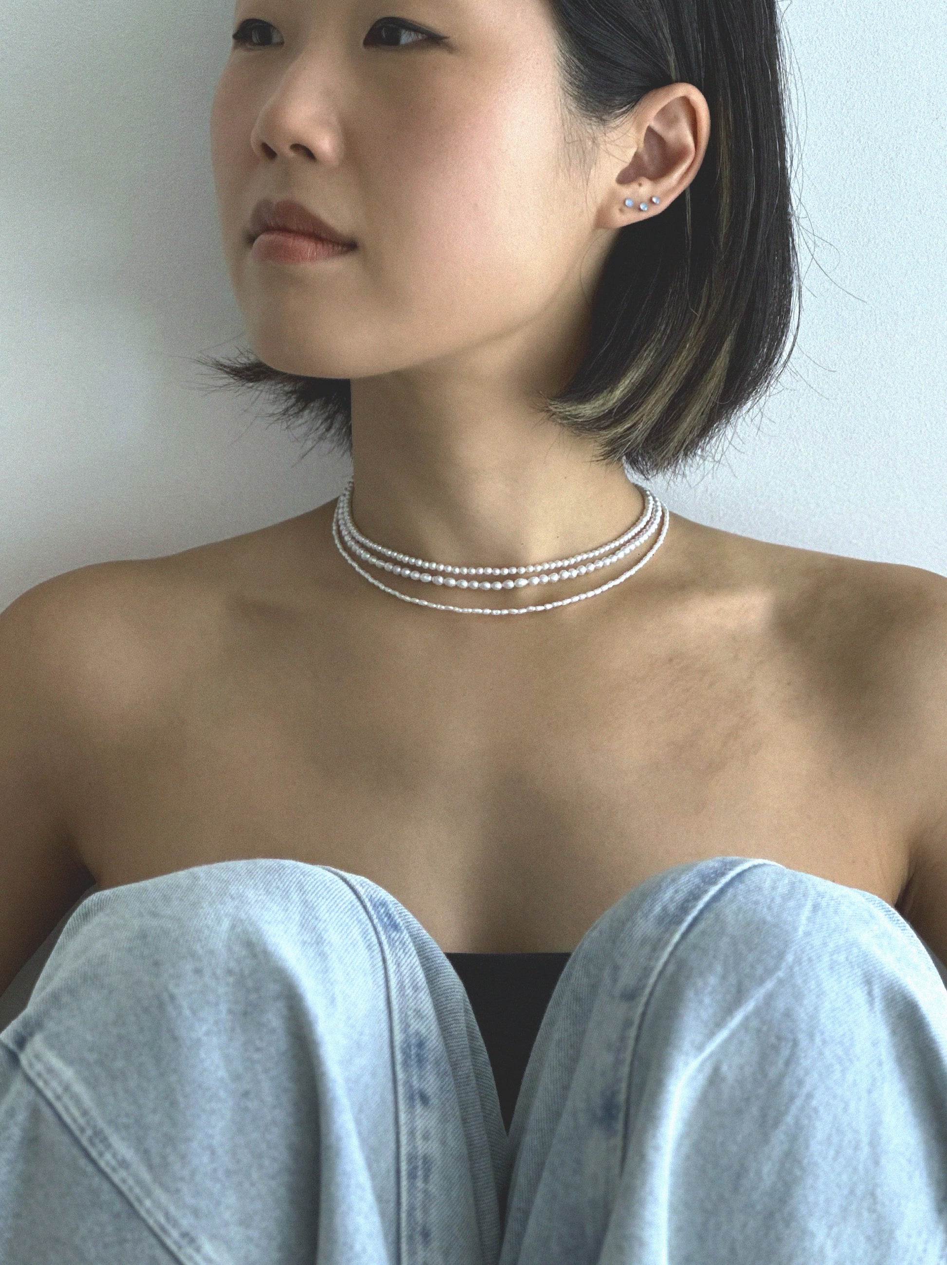 Classic baby 3mm-3.5mm freshwater pearls. 40cm-45cm in length finished with 14k gold plated or 925 sterling silver hardware.