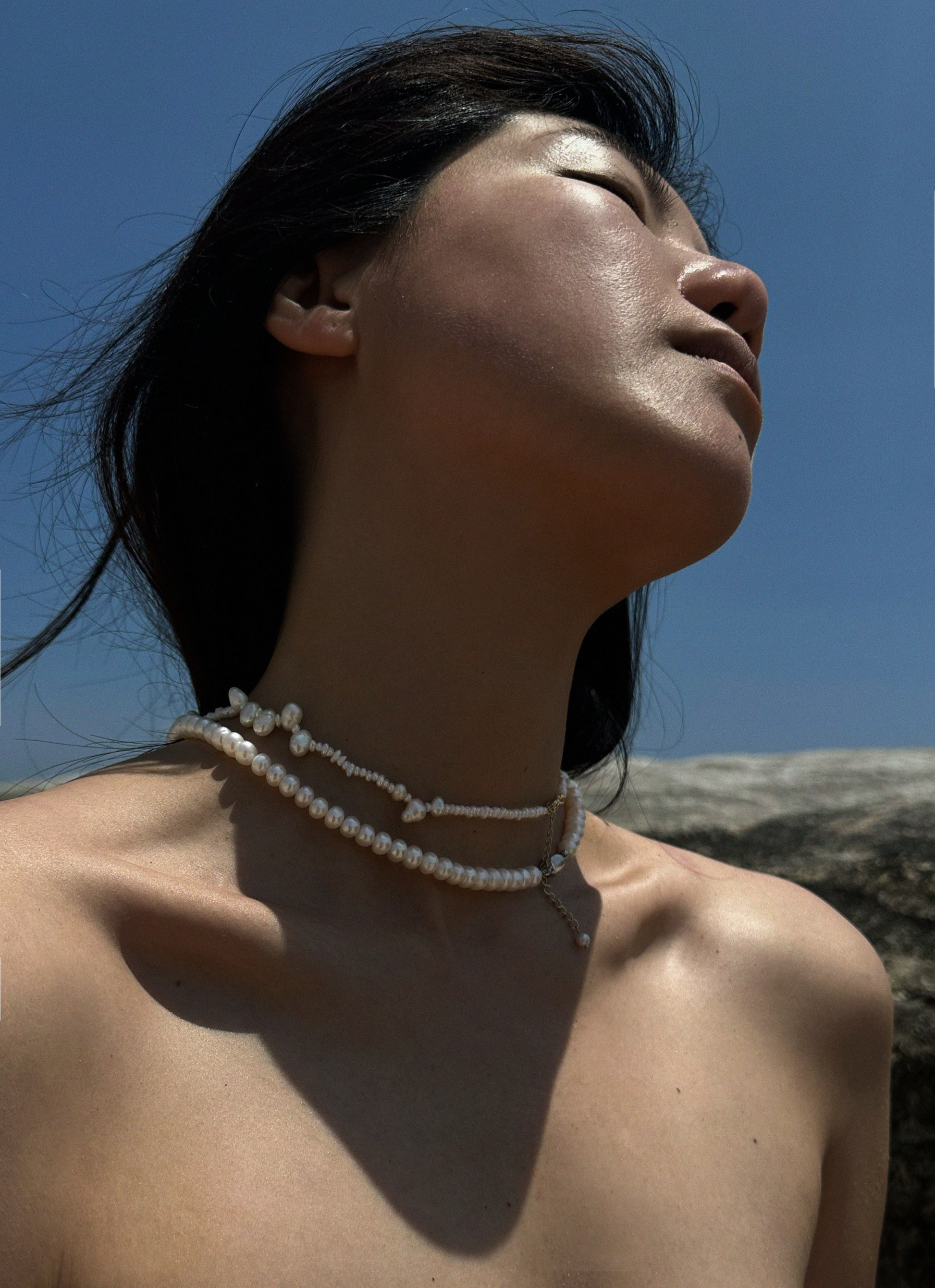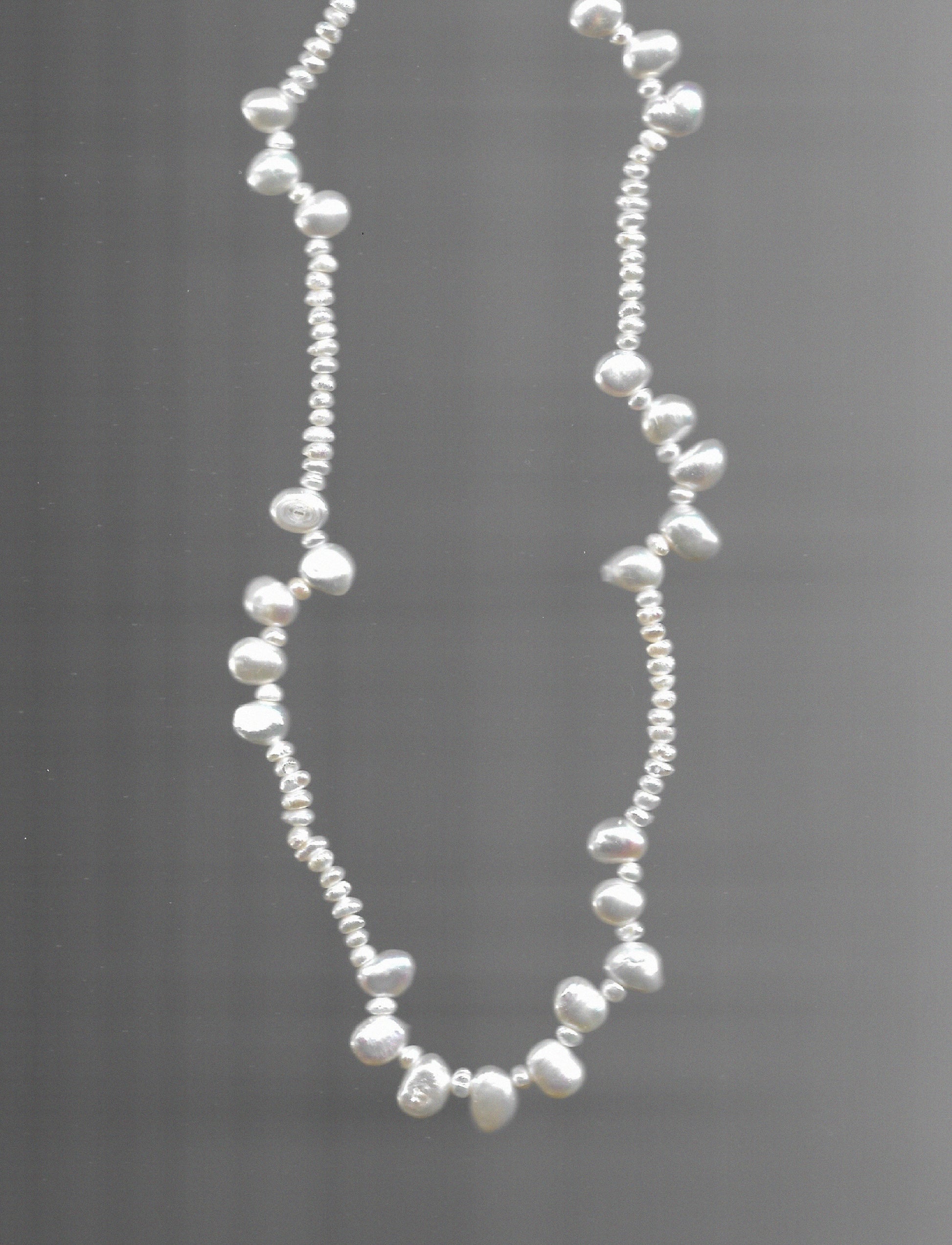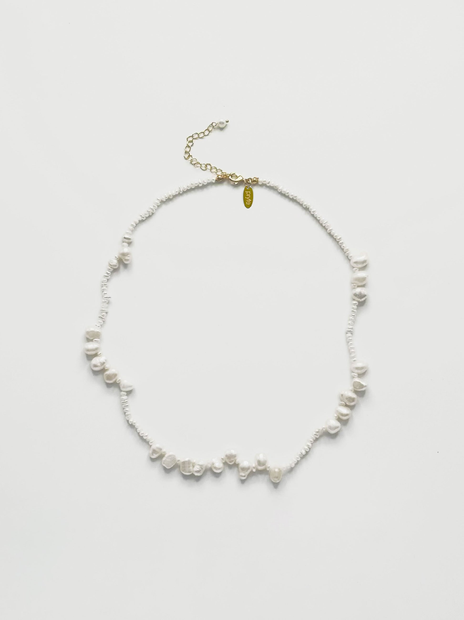 Bold blend of baroque 3mm-8mm freshwater pearls. 41cm-46cm in length finished with 14k gold plated 925 sterling silver hardware.