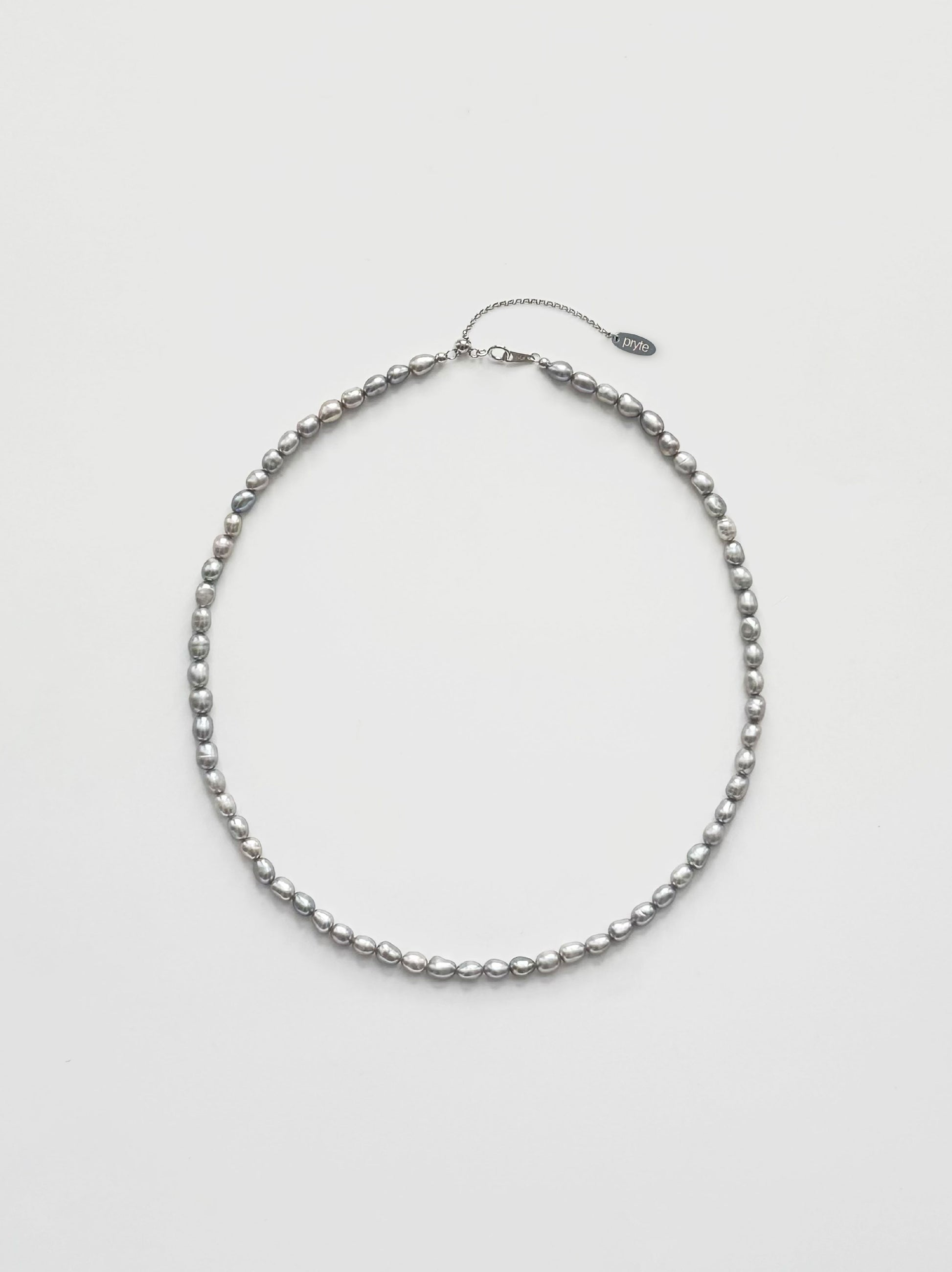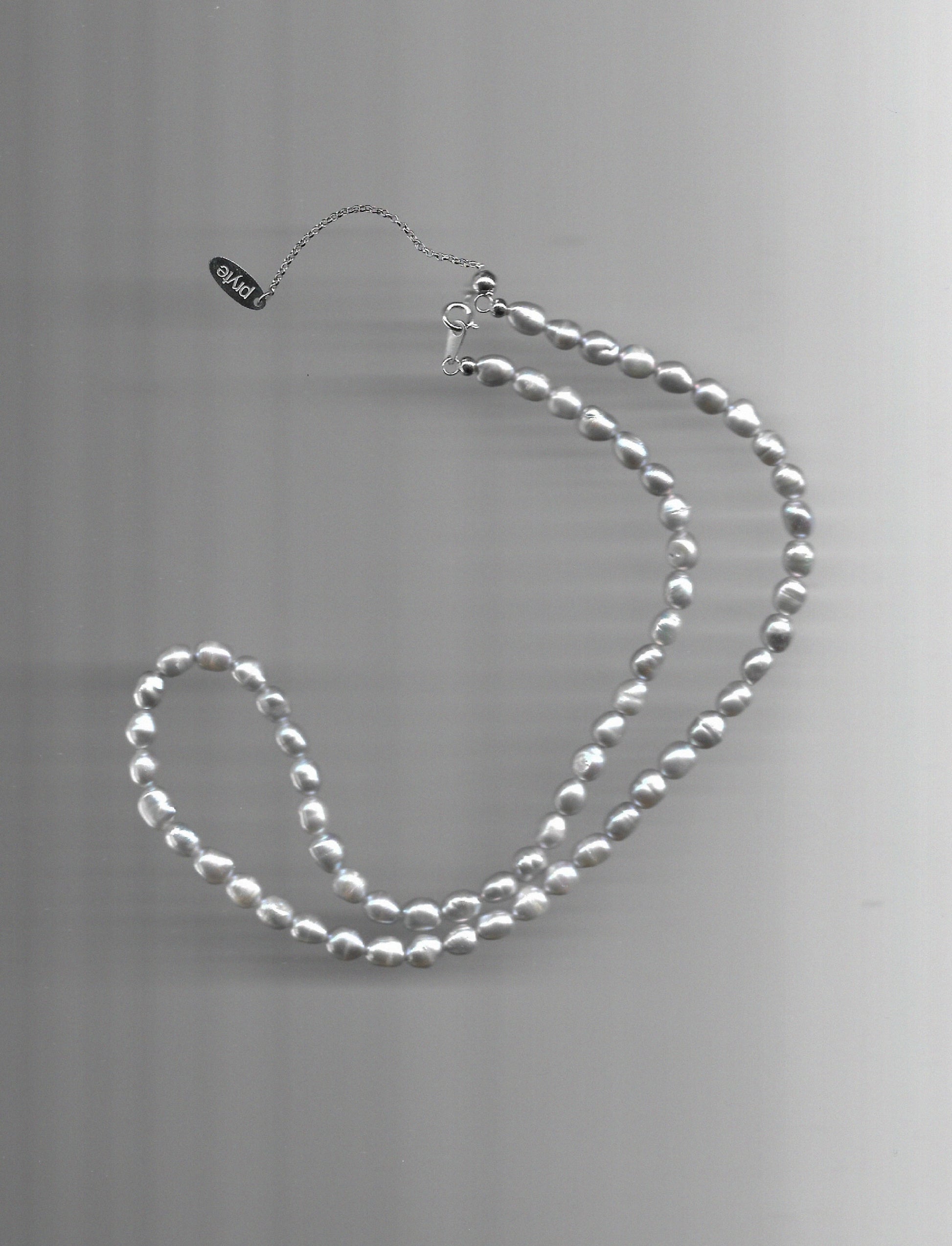 Elegant blend of grey shades 5mm long shaped freshwater pearls. 40cm-45cm in length finished with 925 sterling silver hardware.