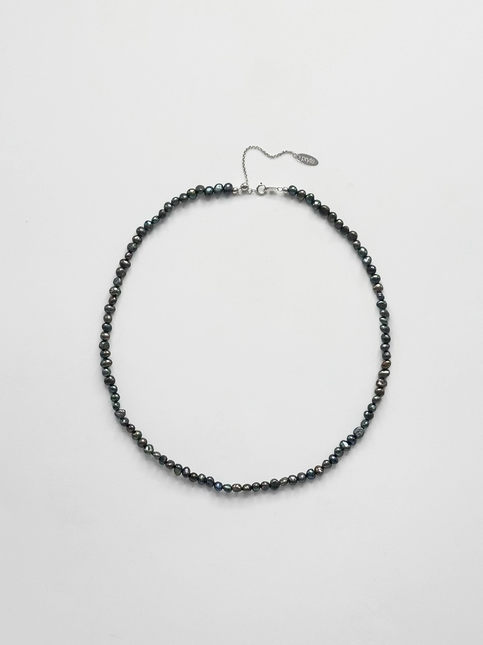Striking 4mm-5mm peacock freshwater pearls. 40cm - 45cm in length finished with 925 sterling silver hardware.