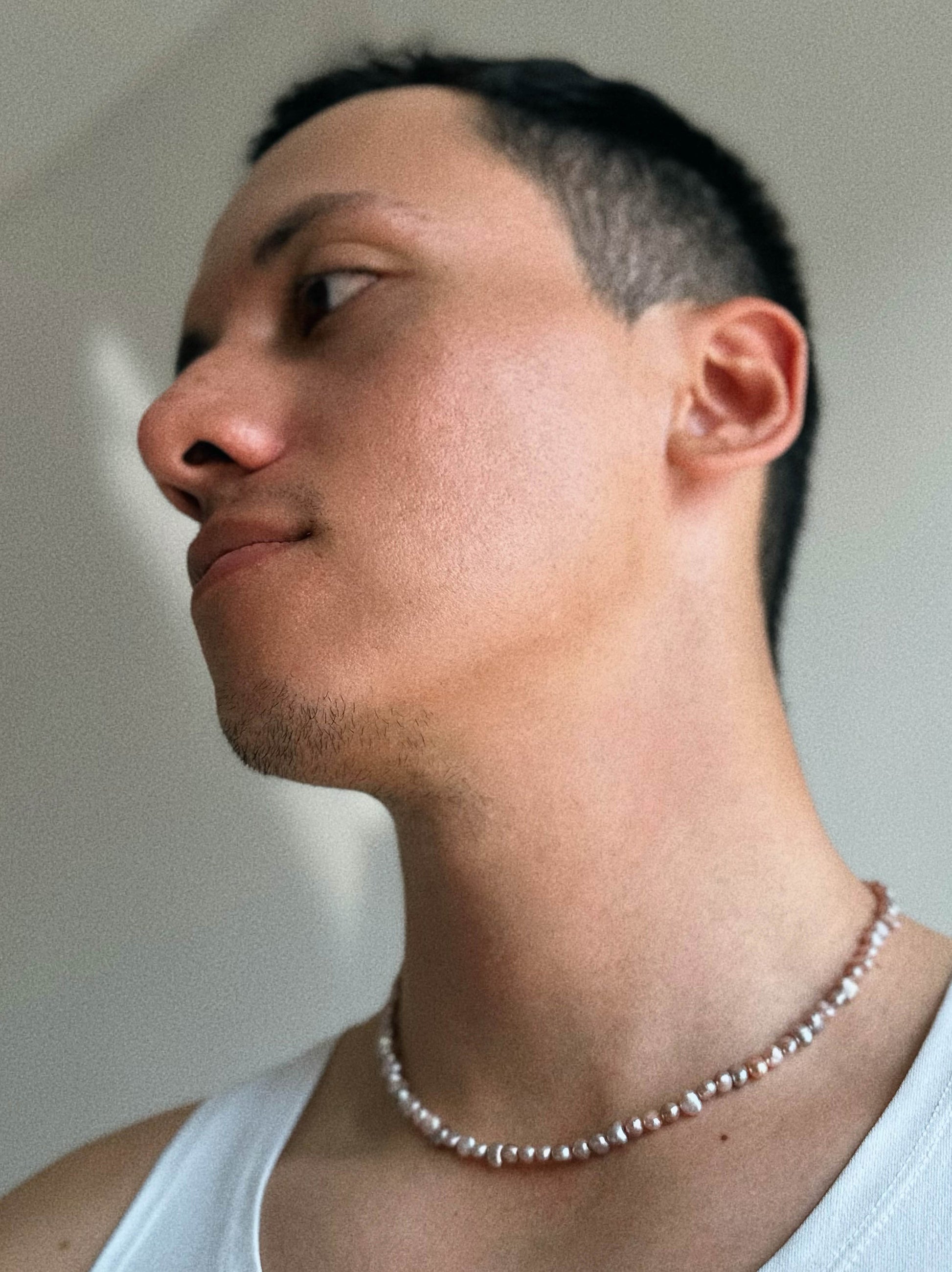 Elegant blend of cool toned pink and purple shades 4mm-5mm freshwater pearls. 40cm-45cm in length finished with 925 sterling silver hardware.